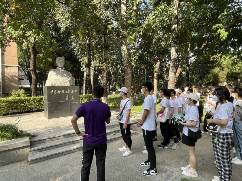 新生们在党支部同学和团校青春班导师的带领下参观校园内红色景点及历史建筑,支部党员详细的为新生讲解了西南联大纪念碑、校钟、思源堂、于方舟烈士墓等地相关的校史故事,回溯峥嵘岁月,赓续红色血脉,将“爱国三问”和“允公允能,日新月异”的校训根植入同学们心中。