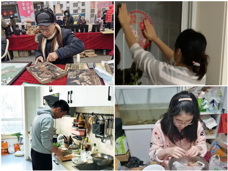 积极参与家庭活动,传承弘扬优秀传统文化。2022级本科生郭子叶认真记录了自己和家人一起置办年货、做年夜饭、拍摄全家福、参加当地民俗活动的珍贵经历,剪辑制作成vlog 把新年装进镜头里。知所从来,方明所去,2020级刘畅通过参观天津市民俗博物馆、杨柳青古镇,深入了解了天津市传统文化和民间习俗,震撼于古镇悠长绵亘的历史内蕴,体悟优秀传统文化的演变脉络。